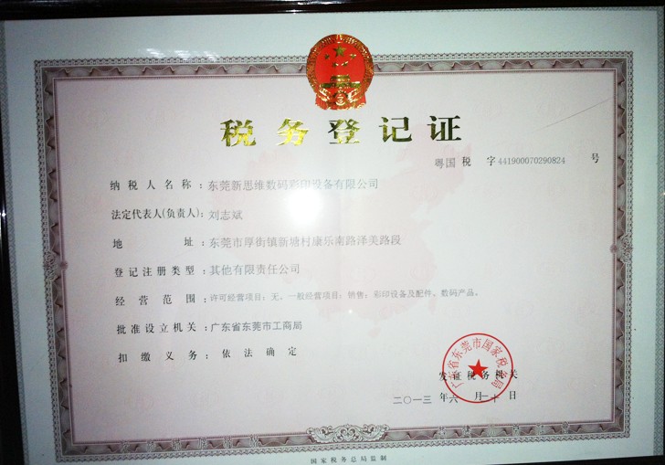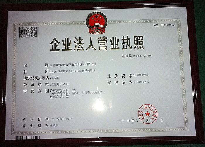 东莞新思维数码彩印设备有限公司 >> 资质证书